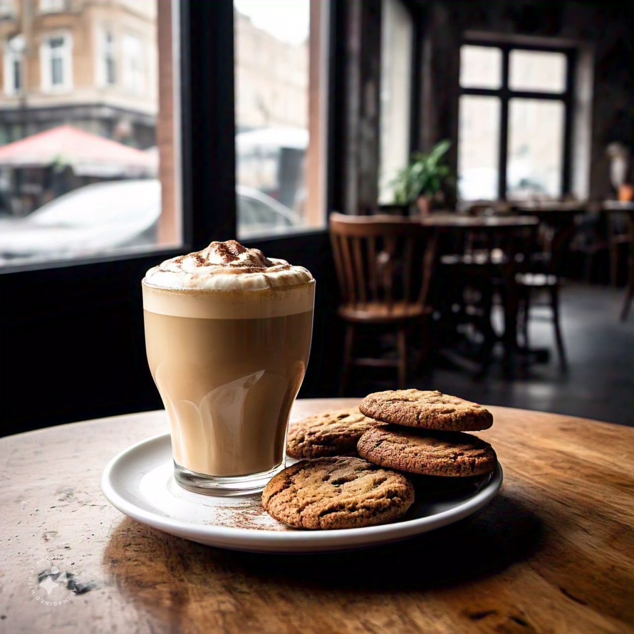 Lleva un tercio de expreso y dos tercios de leche vaporizada, pero se añade una parte de chocolate. Una galleta, o un bizcocho, es un refrigerio o postre horneado o cocido que suele ser pequeño, plano y dulce.