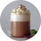 Lleva un tercio de expreso y dos tercios de leche vaporizada, pero se añade una parte de chocolate blanco.